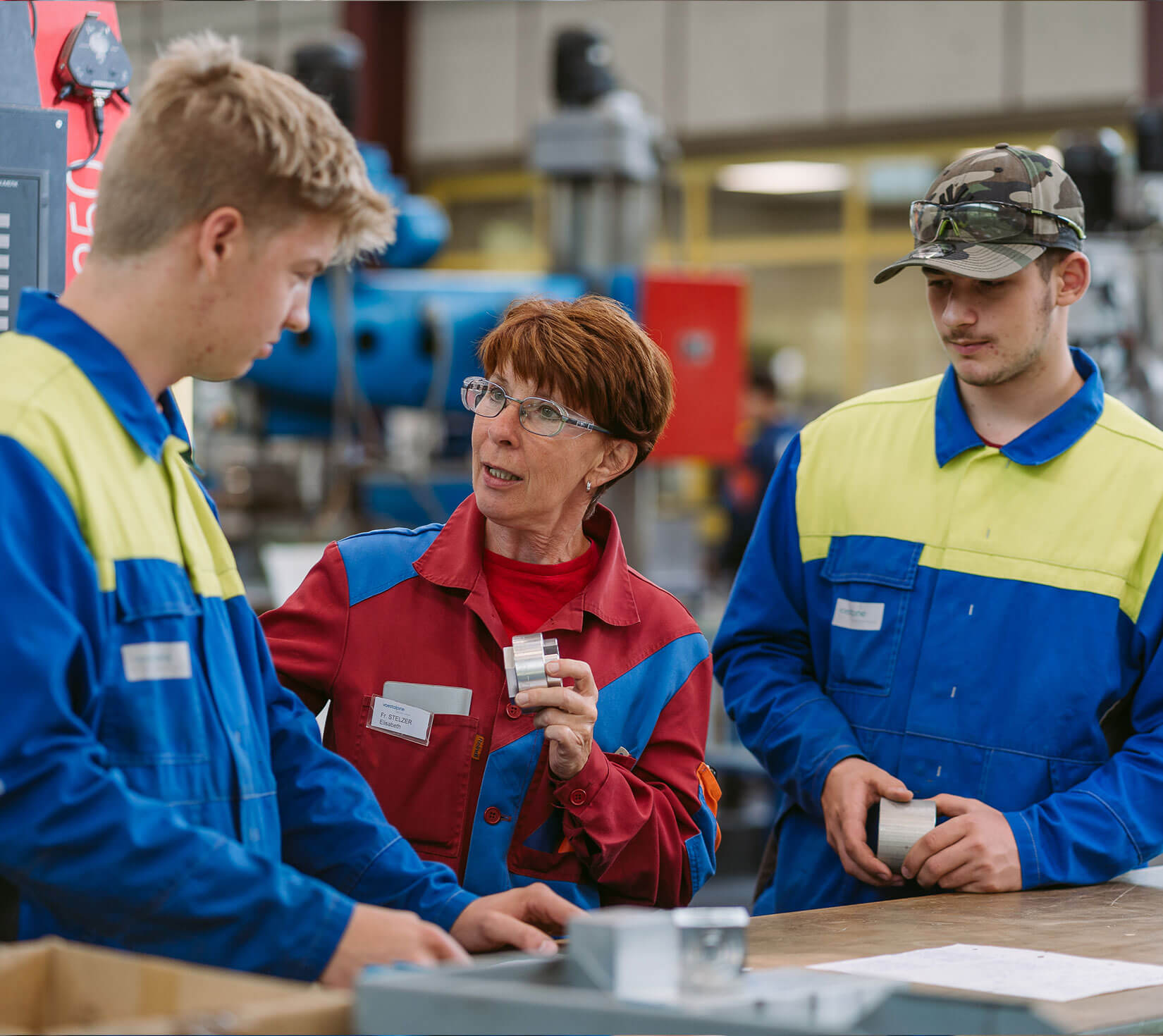 Als junger Lehrling musste sie dennoch einen Gang höher schalten als ihre männlichen Kommilitonen, um von den Ausbildern auch gesehen zu werden. „Ich war sehr zielstrebig und wollte immer einen Tick besser sein als meine Mitschüler“, sagt Elisabeth Stelzer heute. Diese Zielstrebigkeit hat sie ihr gesamtes berufliches Leben begleitet. Sie absolvierte nach ihrer Lehre als erste und damals auch einzige Frau die Meisterschule mit Bravour. Sie liebte die Arbeit an den Maschinen – das Produzieren und die Arbeit in einem Team waren von Anfang an ihre Leidenschaft. Und sie beschritt den Weg von der Vorarbeiterin der Probenfertigung bis schließlich 2010 zur Lehrlingsausbildnerin.
