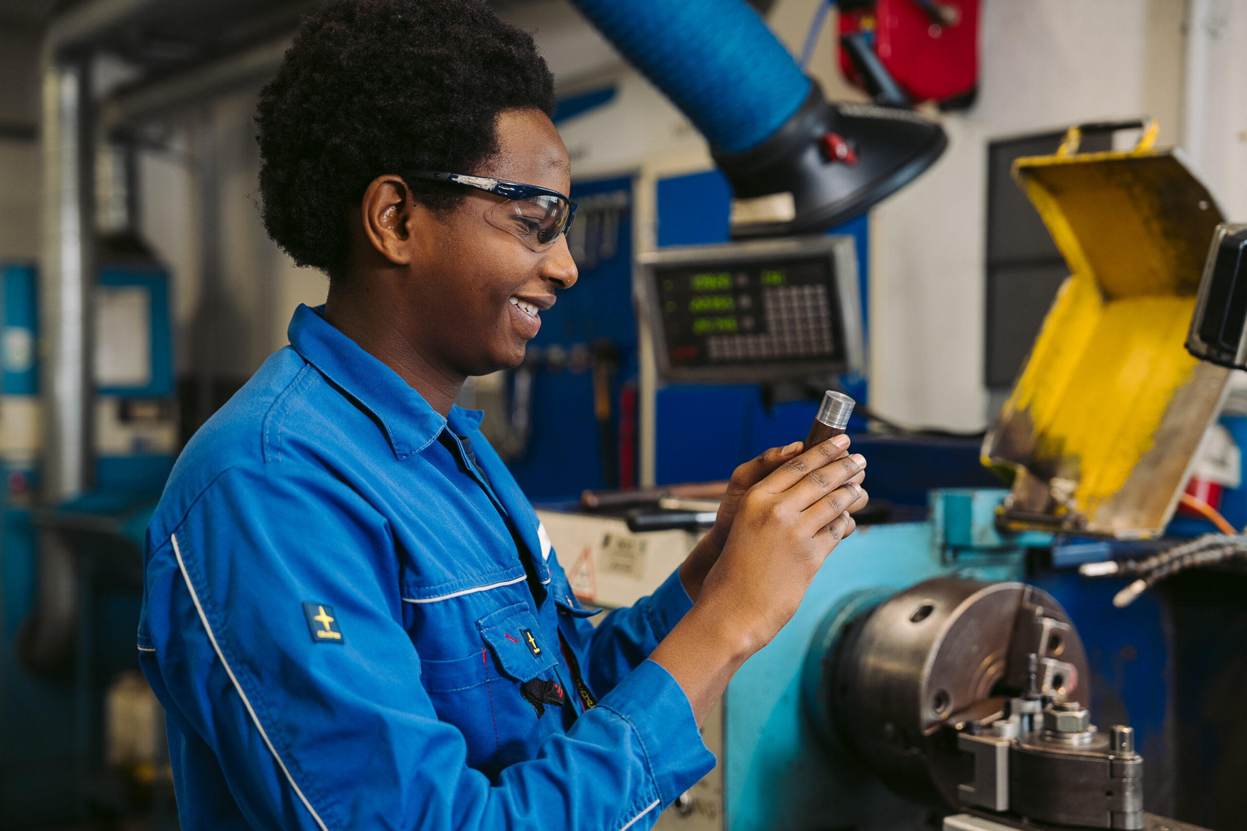 Die Aufgaben haben ihn sofort begeistert: „Am liebsten arbeite ich mit der Drehbank, aber auch das Programmieren liegt mir – Mathematik war schon immer eines meiner Lieblingsfächer.“ Ein Vorteil, da es in seinem Beruf um den Bau von ganzen Anlagen geht.