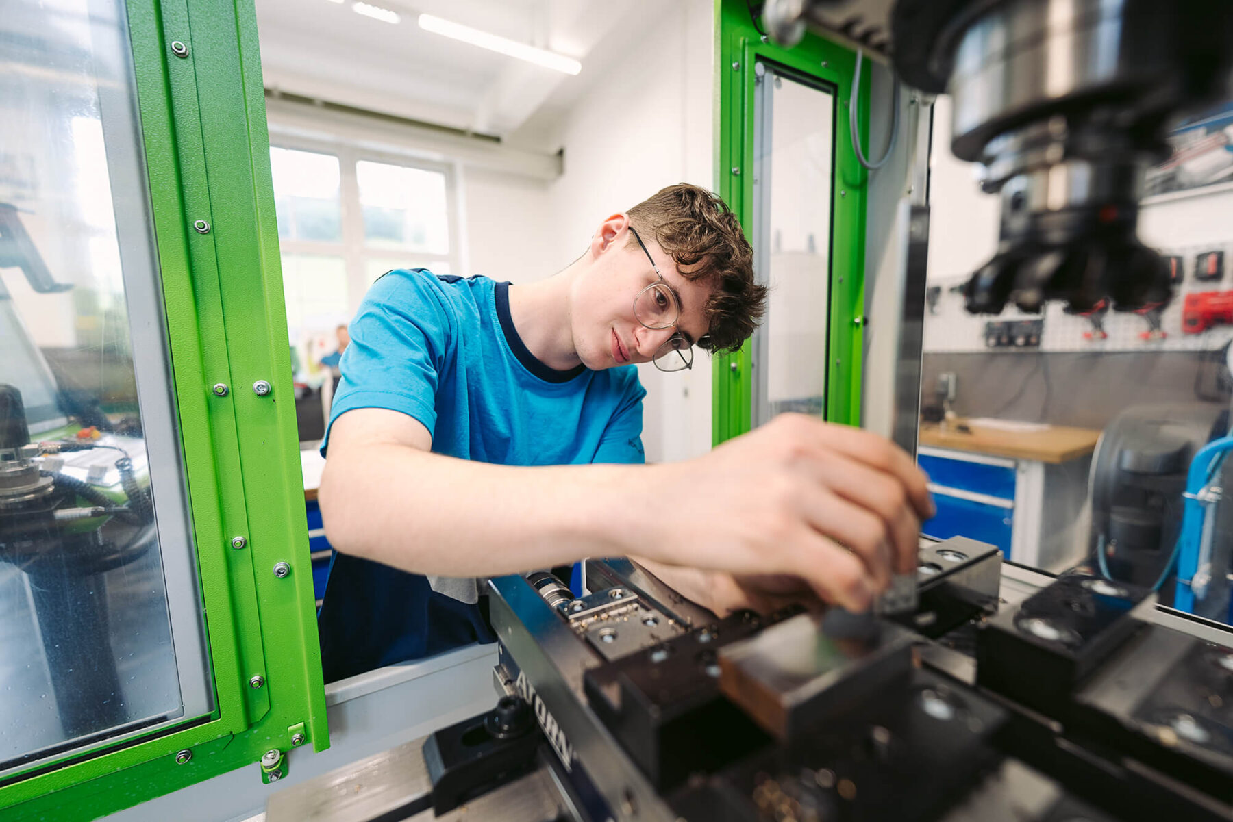 Konstruktions- und Montagepläne zu lesen sowie Wartungs- und Instandhaltungsarbeiten an Anlagen durchzuführen, gehört zum Tätigkeitsbereich von Maschinenbautechnikern genauso wie Werkstücke und Bauteile zu fertigen. „Jeder Tag ist abwechslungsreich“, beschreibt Luca seinen Arbeitsalltag. „Wir stellen viele Werkstücke selbst her, um die Maschinen wieder in Gang zu setzen. Das gefällt mir an der Arbeit gut.“ Nach Abschluss der Lehre geht Luca zum Zivildienst und möchte dann seinen Meister bei uns machen.