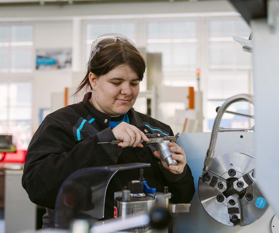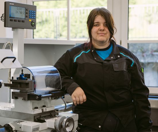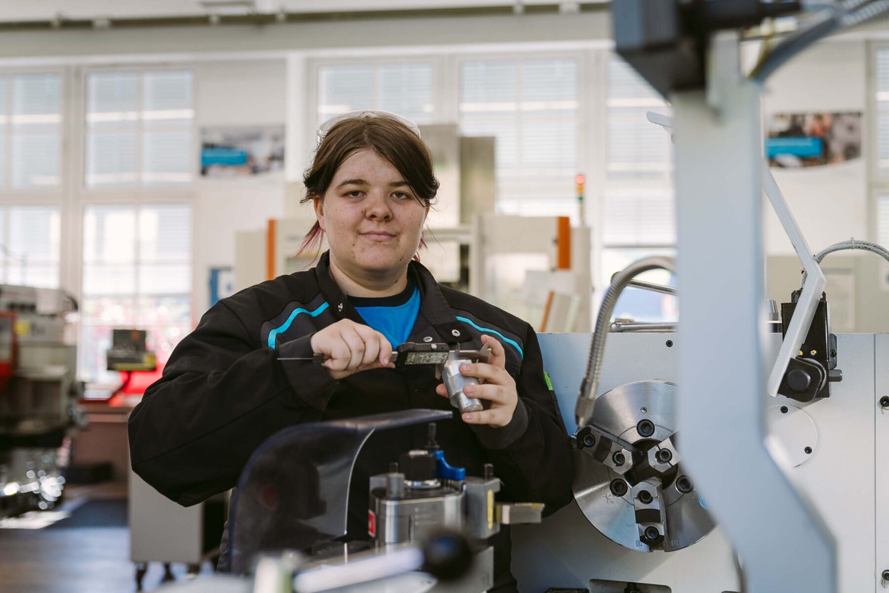 Feilen, Bohren, Nieten, Drehen, Fräsen, Schweißen, und die Wärmebehandlung– die Verfahren, die Sarah in ihrer Ausbildung zur Metallbearbeiterin lernt, sind so vielseitig, wie der Beruf selbst. Im zweiten Lehrjahr schnuppert sie bereits in die unterschiedlichsten Abteilungen und kann sich so haut nah ein Bild davon machen, wohin ihr beruflicher Weg sie einmal führen wird.