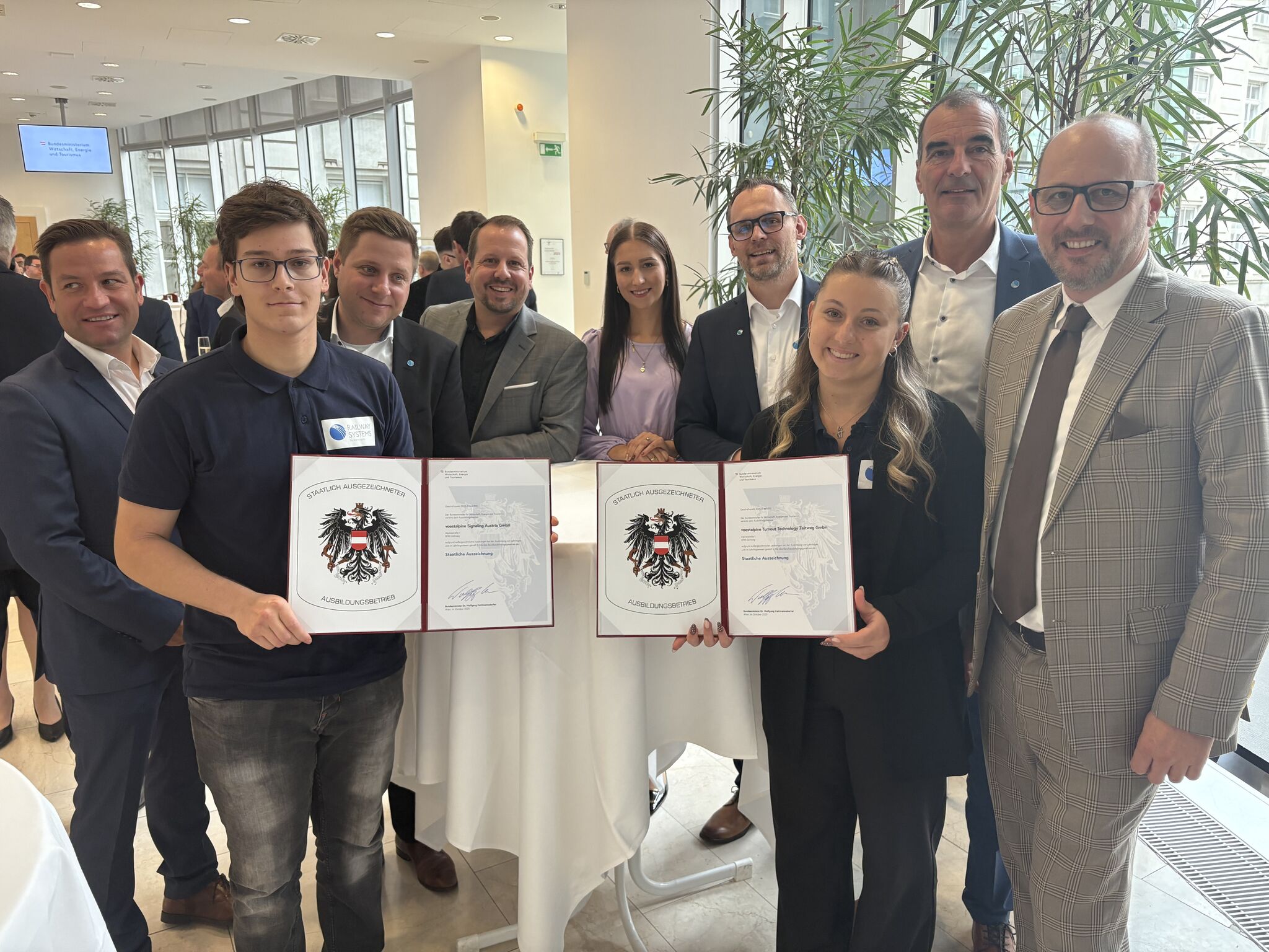 Unser Standort in Zeltweg wurde vom Bundesministerium für Arbeit und Wirtschaft gemäß § 30a BAG als staatlich ausgezeichneter Lehrbetrieb anerkannt. Diese Auszeichnung bestätigt unser langjähriges Engagement für eine hochwertige, praxisnahe und zukunftsorientierte Lehrlingsausbildung, die jungen Menschen nicht nur fachliches Know-how vermittelt, sondern sie auch in ihrer persönlichen Entwicklung stärkt.