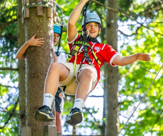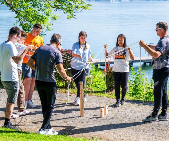 Anfang September machten sich 25 Lehrlinge von Standorten der Railway Systems Gruppe auf den Weg nach Kärnten. In Velden lösten sie bei Teamarbeitsspielen gemeinsam Aufgaben, lernten sich kennen und hielten in Gruppen schon ihre ersten Präsentationen. Und auch sportliche Aktivitäten durften nicht fehlen: Ob Fußballspielen, ein Besuch im Kletterpark oder ein erfrischender Sprung in den Wörthersee. Die beiden angehenden Industriekauffrauen Leonie und Sophie sind sich einig, was das Highlight des Teambuildings betrifft: „Der Kletterpark war richtig cool. Wir waren in Teams eingeteilt und haben geschaut, dass es alle gut schaffen. Auch diejenigen, die Höhenangst haben. Wir haben uns alle kennengelernt, gut verstanden und auch Spaß zusammen gehabt.“ Geleitet wurden die beiden Tage von erfahrenen Trainern der Firma Vitalyzed, die Ausbilder:innen waren im Hintergrund dabei. „Die Trainer:innen begleiten unsere Lehrlinge über die gesamte Lehrzeit hinweg mit regelmäßigem Turnunterricht und Workshops zu wichtigen Themen wie Social Media, Cybermobbing oder gesunde Ernährung. Dass auch sie sich gleich zu Beginn kennenlernen, ist ein weiterer Pluspunkt des Teambuildings“, so Martina Kosi.