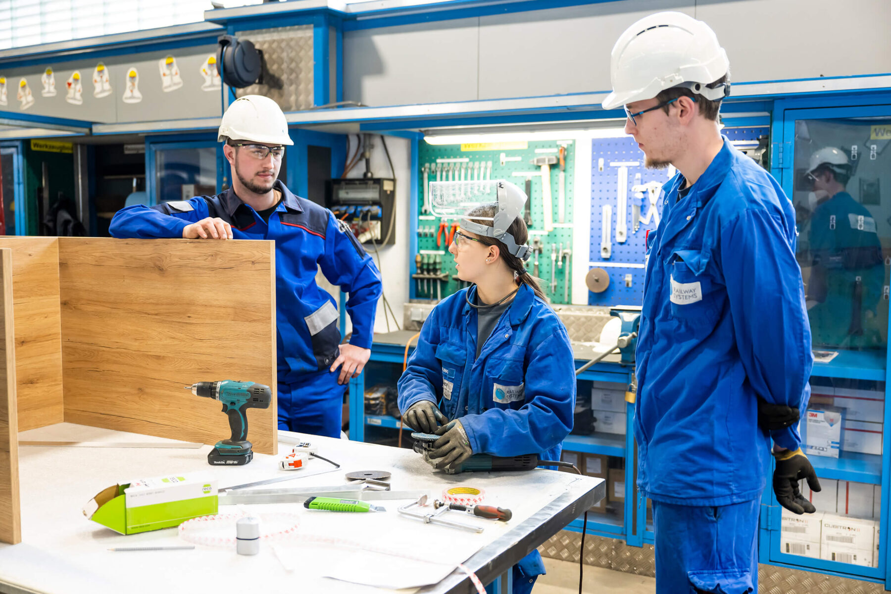 Die Futurezone ist ein eigener Bereich mitten in einer der Zeltweger Produktionshallen und gehört ganz allein den Lehrlingen. Die Dreh- und Fräsmaschinen, 3D-Drucker und 3D-Scanner oder Schweißtische sind dort aber nicht nur bei der Ausbildung im Einsatz: Die Jugendlichen fertigen auch reale und sinnvolle Dinge für den Betrieb an, z. B. Stellagen für die Lagerung von Werkzeugen. So lernen die Auszubildenden am realen Objekt und das Unternehmen spart Kosten für teure Zukaufteile. Auch wiederverwertete Materialien werden in der Futurezone zu neuen praktischen Helfern in der Produktion – industrielles Upcycling. Cool, oder? Die Auszubildenen haben außerdem eine eigene Lehrlingszone, wo sie ihre Pausen verbringen oder bei einem gemeinsamen gesunden Frühstück ein wenig quatschen können. Bei Outdoortrainings oder der Teilnahme an Businessläufen und beim Gesundheitsprogramm „Vitalyzed“ stärken die Jugendlichen nicht nur ihre Fitness, sondern auch die Gemeinschaft. Bei der Lehrlingsweihnachtsfeier, gemeinsamen Exkursionen, Messeauftritten oder Lehrlingswettbewerben wird dieser starke Zusammenhalt im Team der Auszubildenen immer wieder sichtbar und vor allem spürbar – einfach ein super Team!