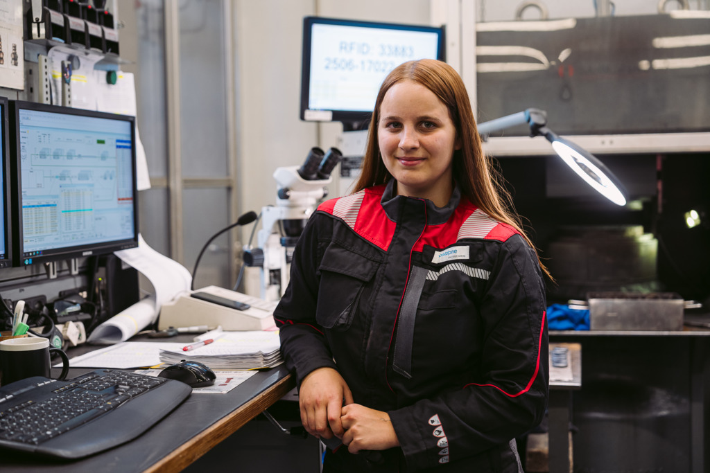 „Härteprüfung, Zug- und Biegeversuch sowie Untersuchungen nach Wärmebehandlung gehören zu meiner Arbeit dazu“, erklärt Fabienne. Auf Basis der Ergebnisse kann die Qualität von Werkstoffen verbessert werden.
