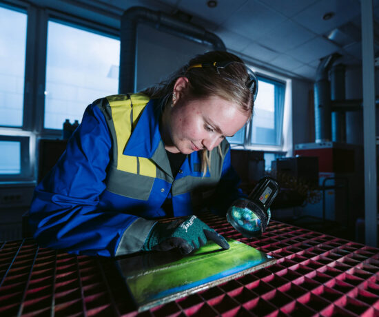 „Im Job ist sehr viel Fingerspitzengefühl gefragt. Man arbeitet mit Prüfmethoden, bei denen zum Beispiel Ultraschall oder Magnete zum Einsatz kommen. Außerdem bin ich nicht nur im Ausbildungszentrum, sondern auch viel im Unternehmen unterwegs. Das finde ich super.“ Ronja ist sehr kommunikativ und kommt in jedem neuen Bereich schnell zurecht. Geschickte Hände und Interesse für Chemie sowie Physik sind hilfreich, schließlich werden viele chemische Tests durchgeführt. „Ich bin froh, dass ich mich nach dem Schnuppertag für die Ausbildung entschieden habe. Ich möchte weiter im Unternehmen bleiben. Spannend finde ich auch, dass wir viel über neue Methoden in Zusammenhang mit Nachhaltigkeit erfahren.“