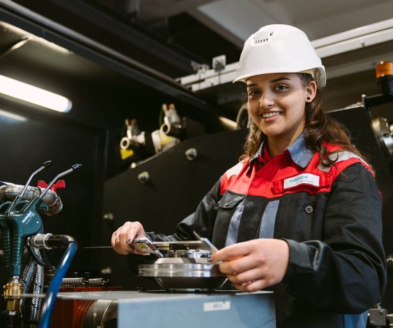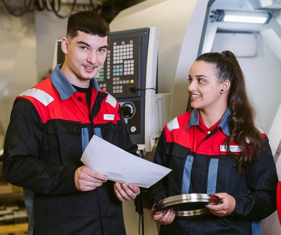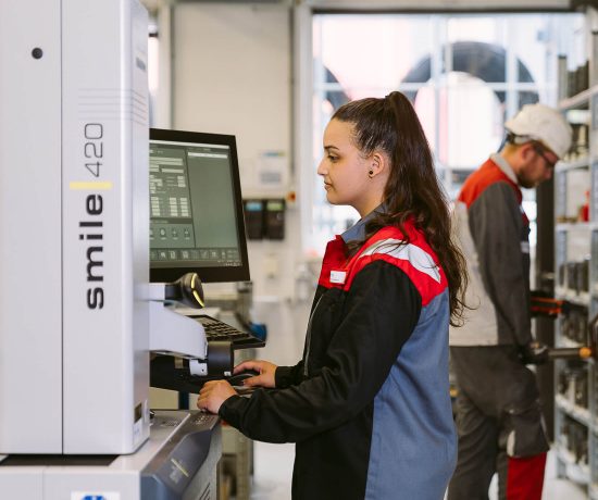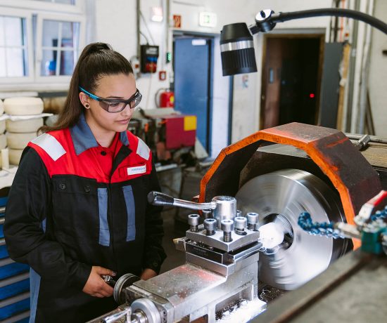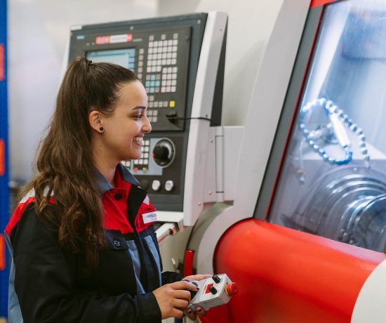 Wie sie zu diesem Beruf gekommen ist: „Ich habe einen Schnuppertag gemacht, konnte dort verschiedenste Tätigkeiten ausprobieren und die Zerspanungstechnik hat mir gleich gefallen. Heute habe ich meinen eigenen Bereich. Ich bearbeite Werkstücke an der Drehbank oder programmiere die CNC-Maschine. Dabei kann ich sehr selbstständig arbeiten, das macht mir Spaß.“ Die Lehrzeit war für die junge Frau auch sehr spannend: „In den ersten zwei Lehrjahren gab es viel Theorie, das Lernen habe ich anders als in der Schule empfunden. Man lernt Dinge, die man dann auch direkt umsetzen kann. In den letzten eineinhalb Lehrjahren war ich dann direkt im Betrieb im Einsatz und konnte sehen, wie sich meine Arbeit gestalten wird.“
