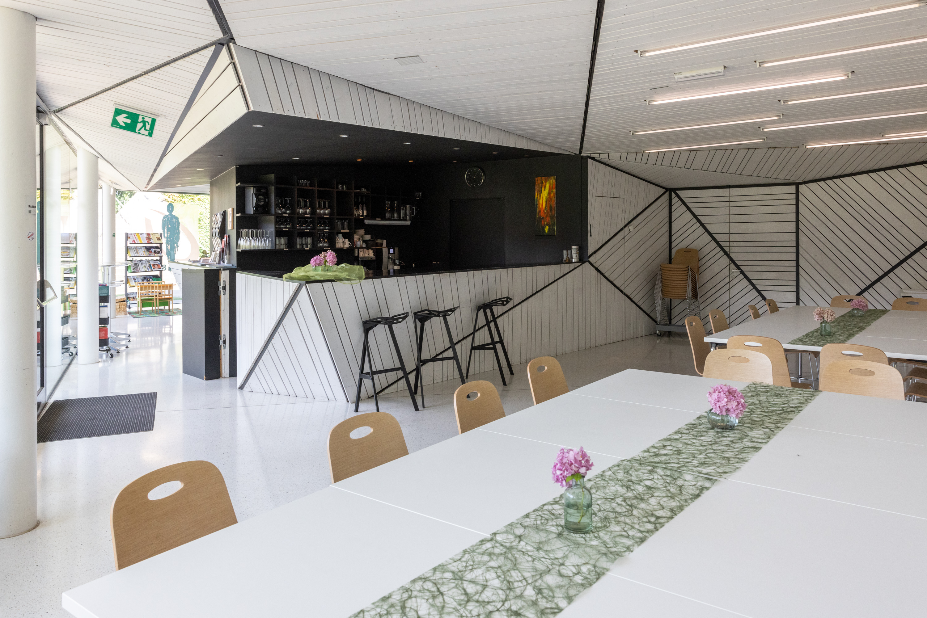 können durch das Öffnen der mobilen Trennwand miteinander verbunden werden