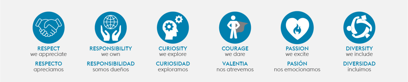 - Holding ourselves accountable for results and behaviors | Haciéndonos responsables de los resultados y comportamientos.