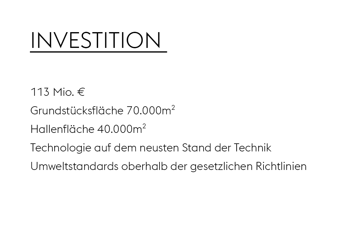 Produktion auf neustem technischen Stand hinsichtlich Umweltschutz und Energieeffizienz.