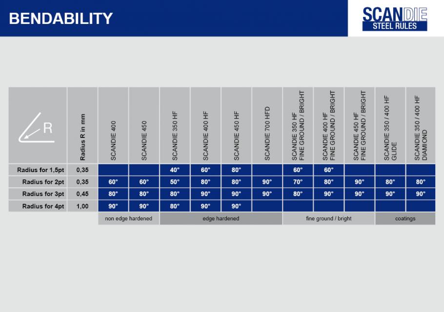 | Thickness in mm | Thickness in pt | Tolerance in mm |