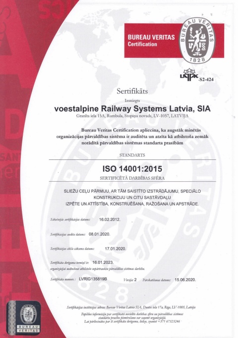 Uzņēmumam ir piešķirts ISO 14001:2015 Vides vadības sistēmas standarts, kas pierāda uzņēmuma saudzīgo attieksmi pret apkārtējo vidi. Ražošanas un pakalpojumu izplatīšanas procesā mēs plānojam un kontrolējam savu ietekmi uz dabu.