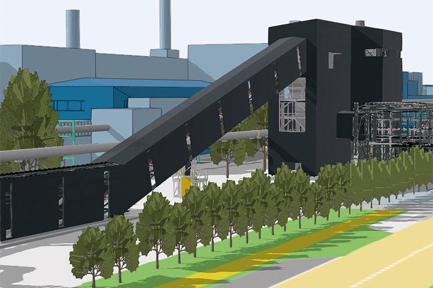 Das verbleibende HBI wird in einer automatisierten Probenahmeanlage auf chemische Zusammensetzung hin analysiert und in die Rohstoffversorgung eingeschleust. Der weitere Transport Richtung EAF erfolgt in der bereits fertig gestellten Förderbandbrücke.