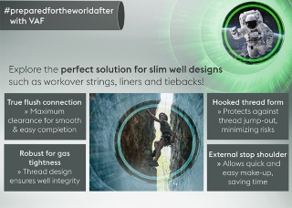 Sie sind auf der Suche nach der perfekten Lösung für enge Bohrstellen? Mit VAF bieten wir das optimale Produkt für diese Anwendung. Einen Meilenstein feiern wir mit der Veröffentlichung des neuen Proprietary Grades Kataloges: unser Produktportfolio wurde um 13CR Güten erweitert. Wir sind mehr als bereit für extreme Bedingungen mit unserer neuen Premium Gewindeverbindung VAsuperior®-ET. Wir sorgen uns um die Zukunft und übernehmen soziale Verantwortung mit unseren nachhaltigen Maßnahmen.