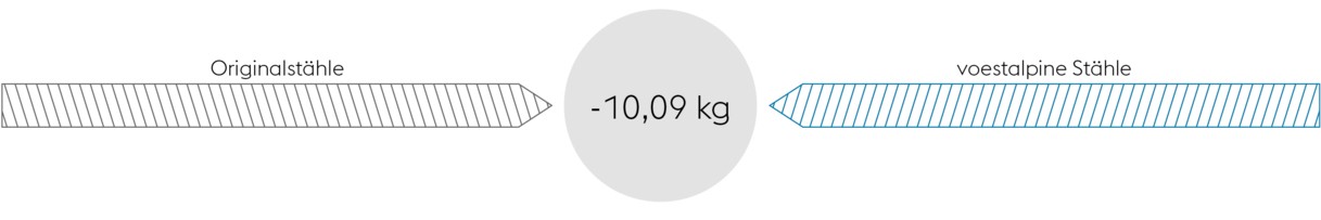 | Bauteil | Original-Stahl | Gewichtseinsparung in % | voestalpine Stahl |