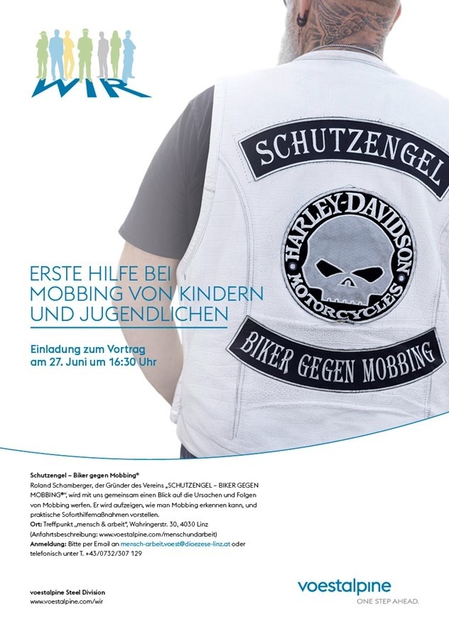 am 27. Juni um 16:30 Uhr findet im Treffpunkt "Mensch & Arbeit" ein wichtiger Vortrag statt, der sich mit dem Thema „Erste Hilfe bei Mobbing von Kindern und Jugendlichen“ beschäftigt. Wir haben uns mit dem Verein "SCHUTZENGEL - BIKER GEGEN MOBBING®" zusammengetan, um das Thema Mobbing in seinen unterschiedlichen Facetten zu beleuchten.